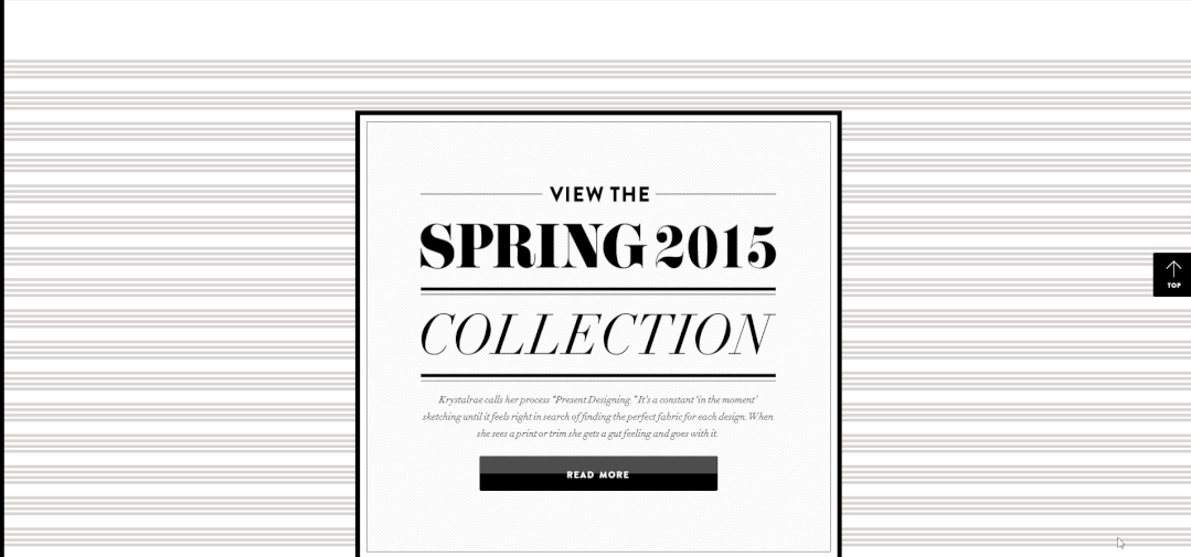 对对对,就是这么的简单!!! 变装效果 krystalrae通过网站滚动展示了变装效果 当用户向下滚动页面时 会看到画面中人物变换服装 页面采用同样的人物 同样的静态站姿 同一种画面底色 以强调服装元素的变化 页面故事显得干净利索 接下来 小编用表情包来进行演示 首先到云设计找一个表情包 编辑表情包牌子中的文字 小编保存了三张不同文字的图片 (建议保存时修改命名以便后期查找哦) 接着回到网站编辑页面 添加三个通栏排版模块 -END- |